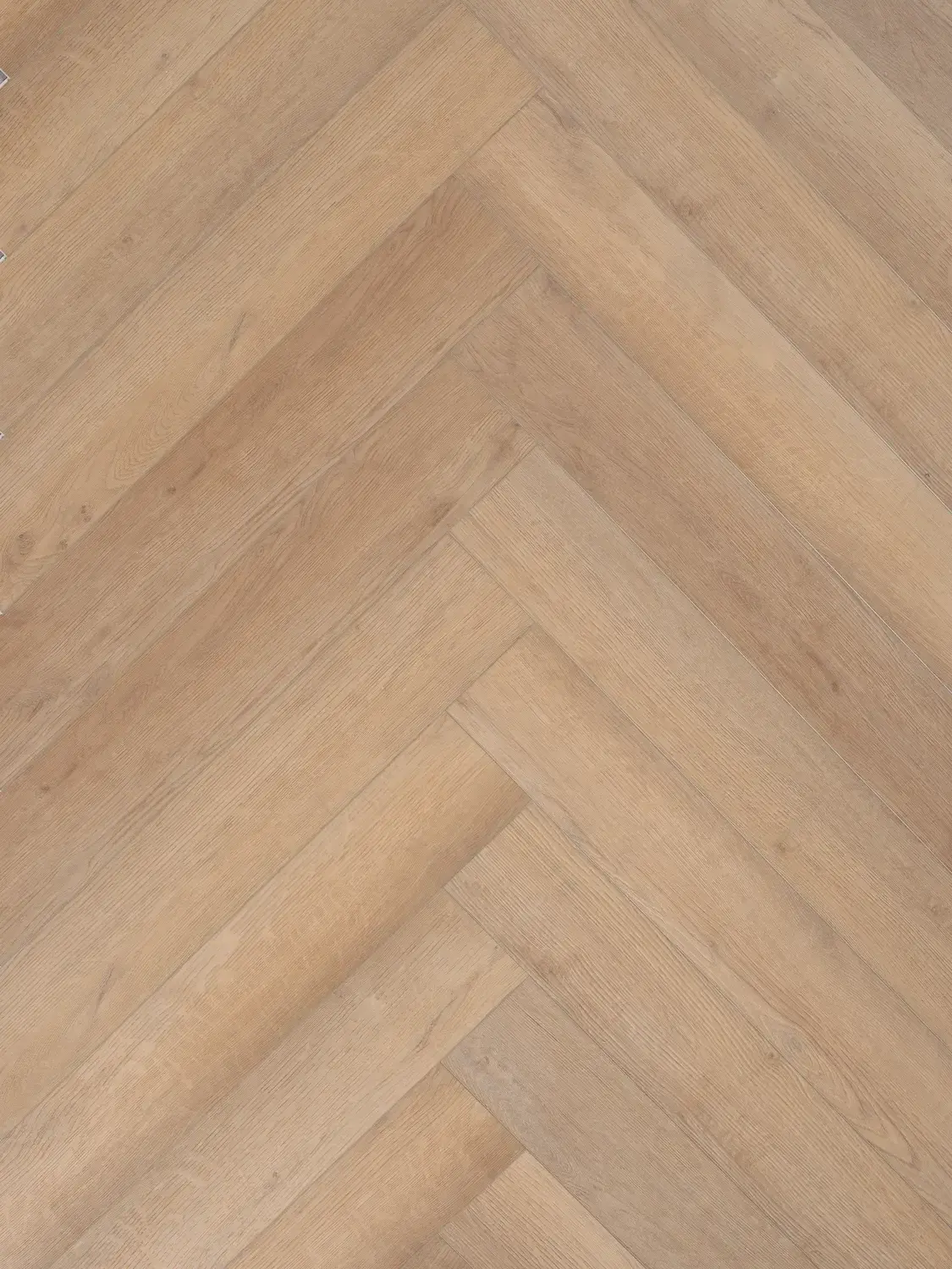 Синхронный рельеф совпадает с рисунком декора — поверхность неотличима от натурального паркета