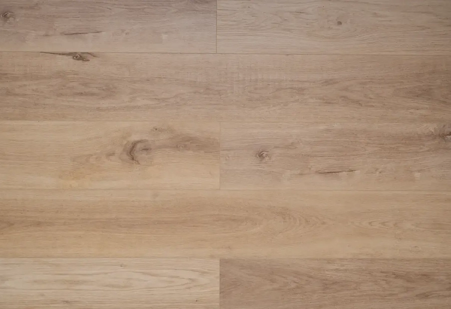 Синхронный рельеф совпадает с рисунком декора — поверхность неотличима от натурального паркета