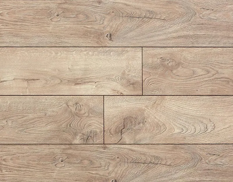 Синхронный рельеф совпадает с рисунком декора — поверхность неотличима от натурального паркета